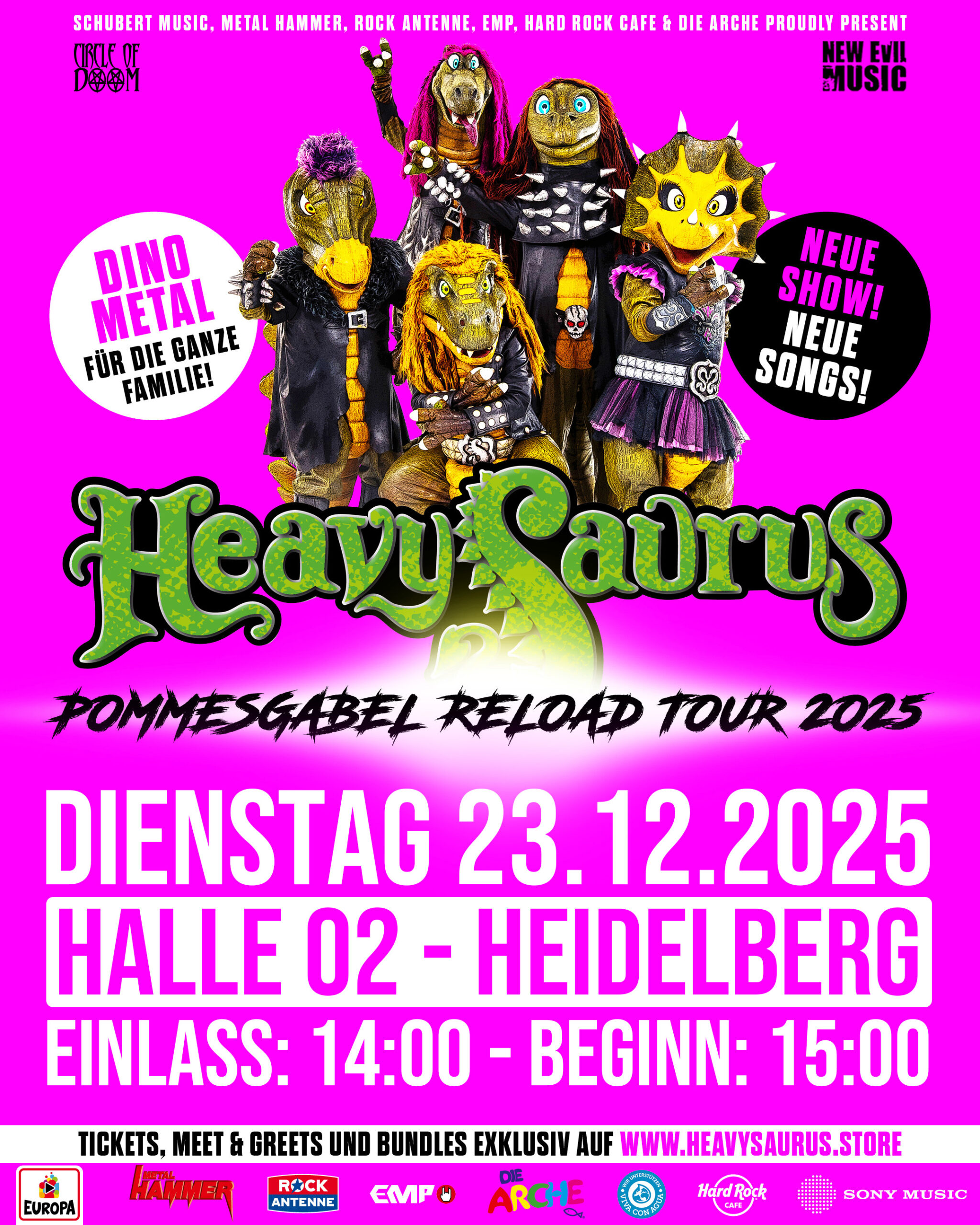 halle02 Zollhofgarten 2, HeidelbergHeavysaurus Dienstag 23.12.2025 VIP-Einlass 13:00 Uhr / Einlass 14:00 / Beginn 15:00 Die Kinder wollen noch mehr rocken, und am liebsten mit HEAVYSAURUS! Dahinter verbergen sich vier Dinosaurier und ein [...]